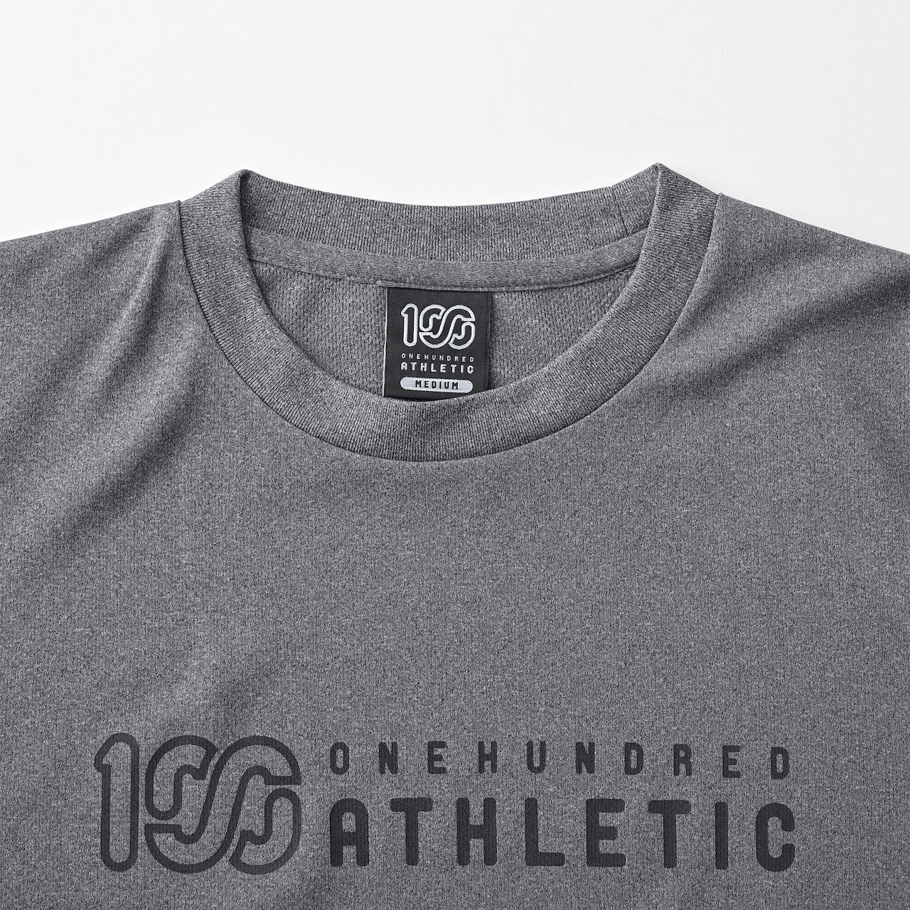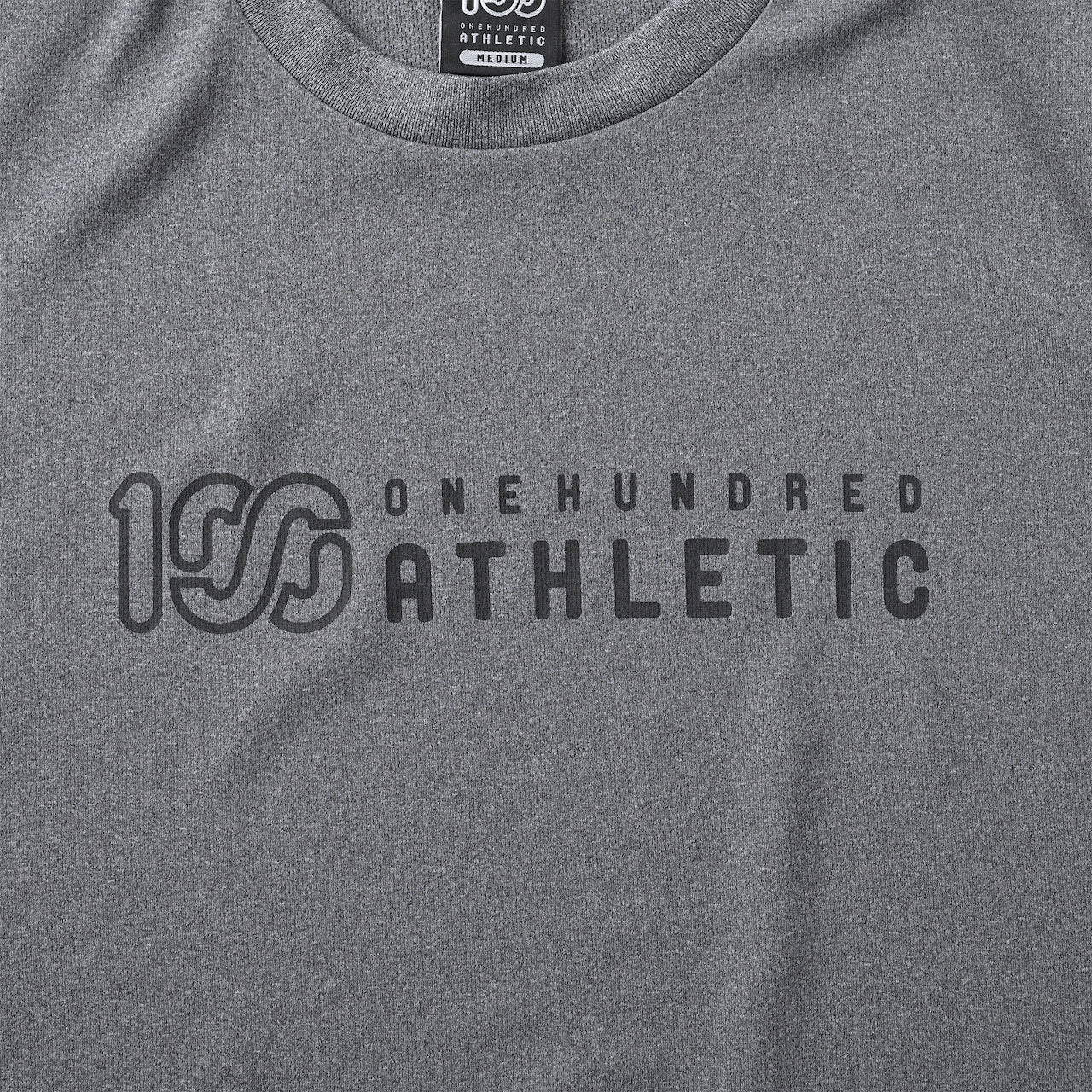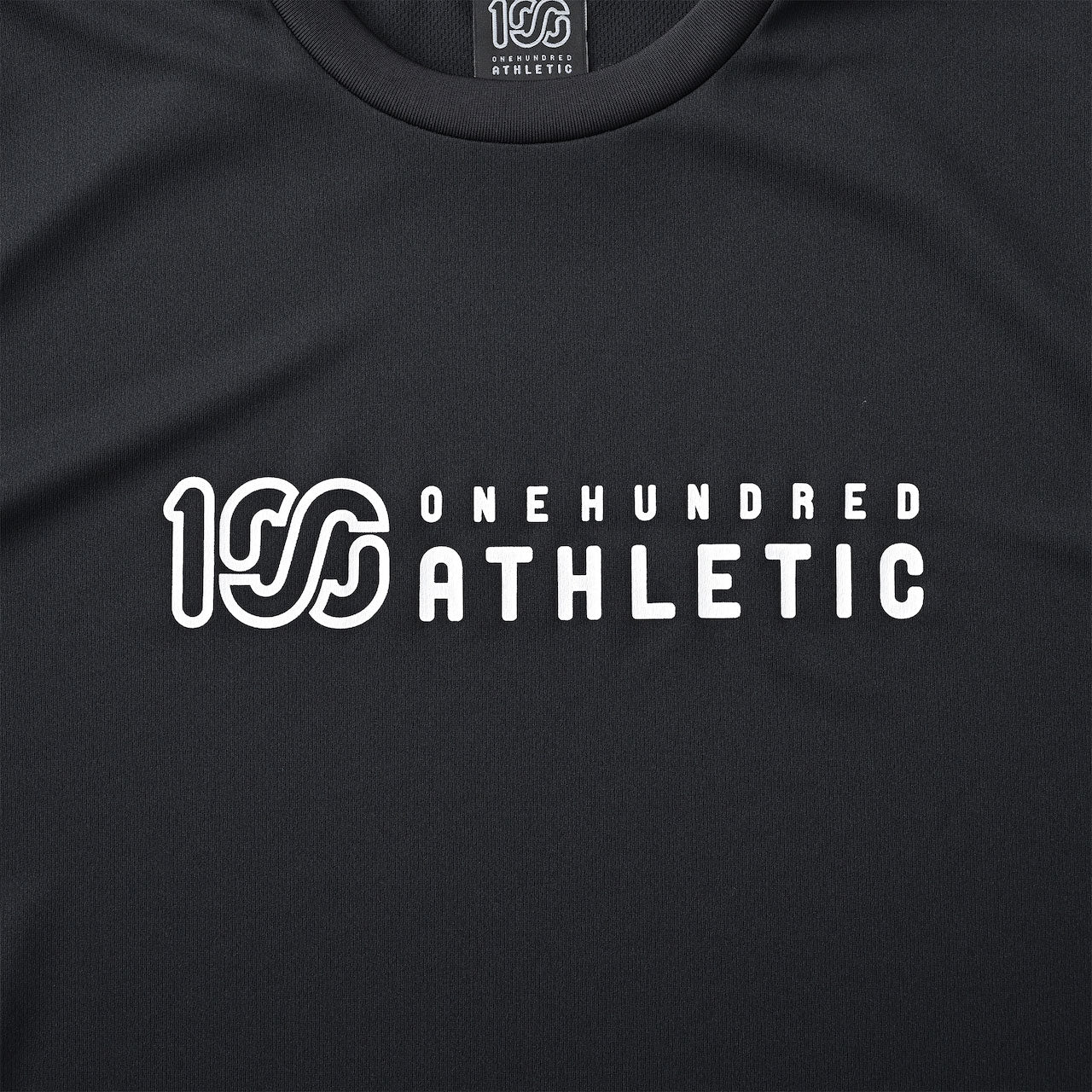 吸水速乾・UPF20(遮蔽率90%)のポリエステル素材を使用したショートスリーブグラフィックトップ。フロントとバックには100Aロゴをプリント。