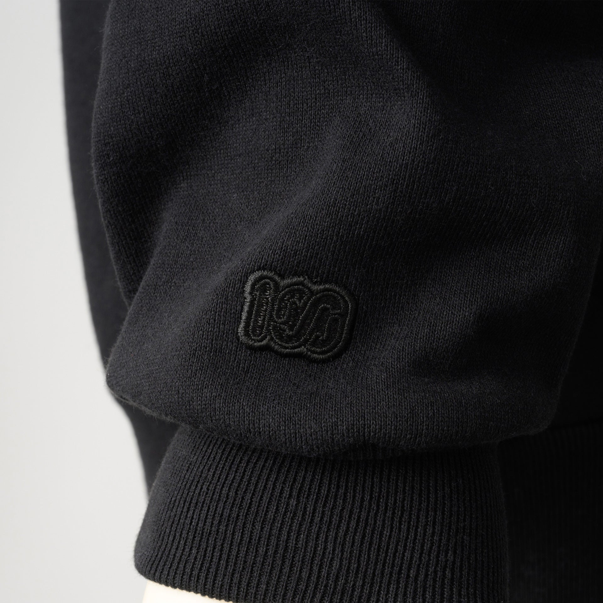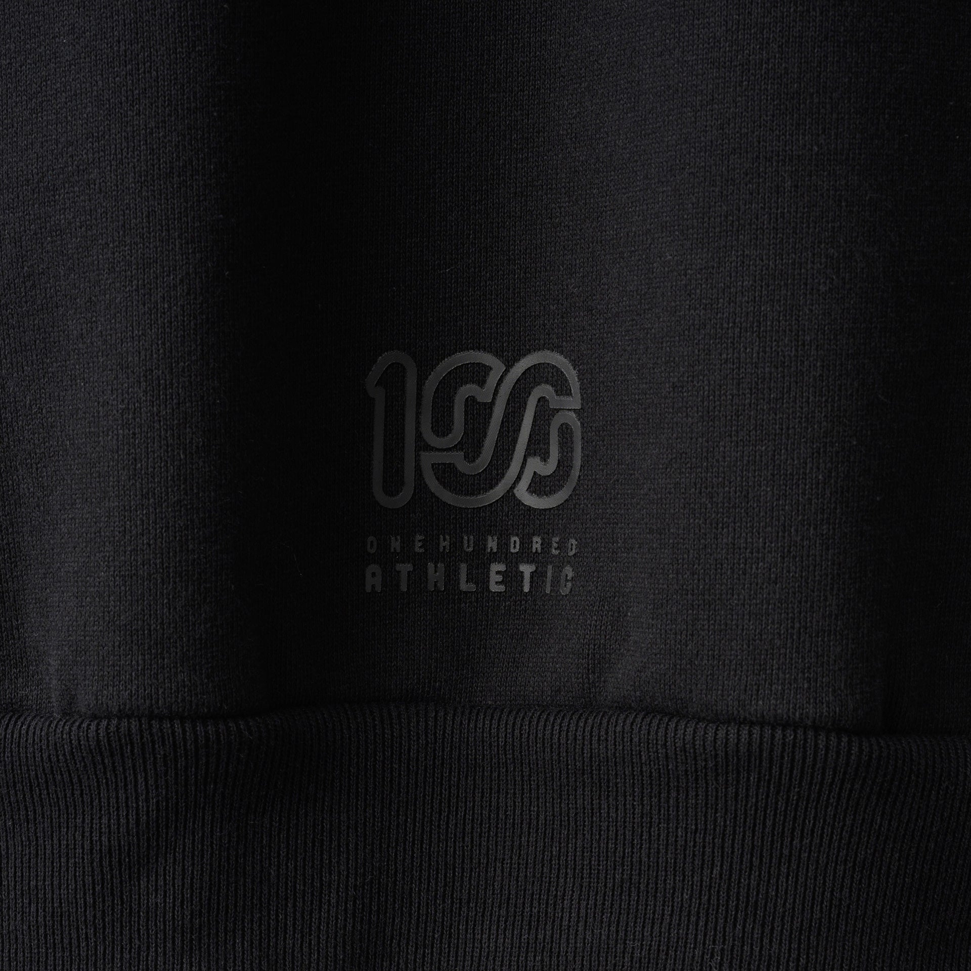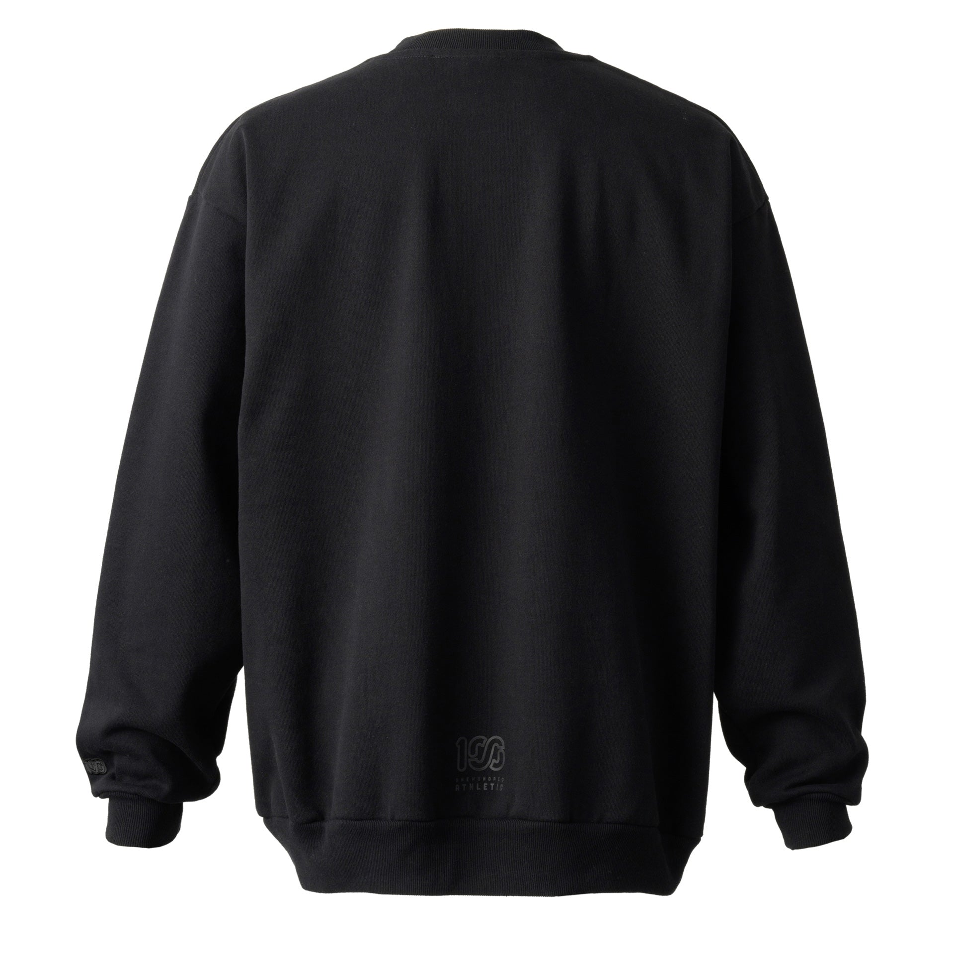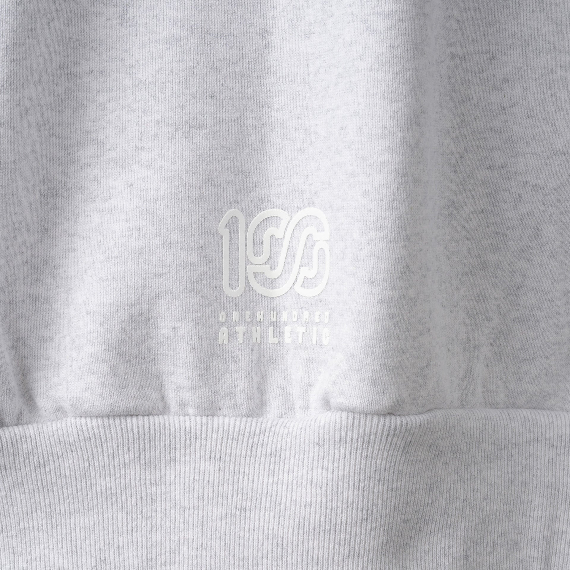 頑丈な編み立てに裏起毛を施した、15ozというボリュームの極厚生地を採用しました。オープンエンド糸を使用しているのでザラッとしたシャリ感とともに適度な保温性と吸湿性も有します。フロントとバックにそれぞれ100Aロゴを厚くプリントし、左袖口に100ロゴを刺繍。