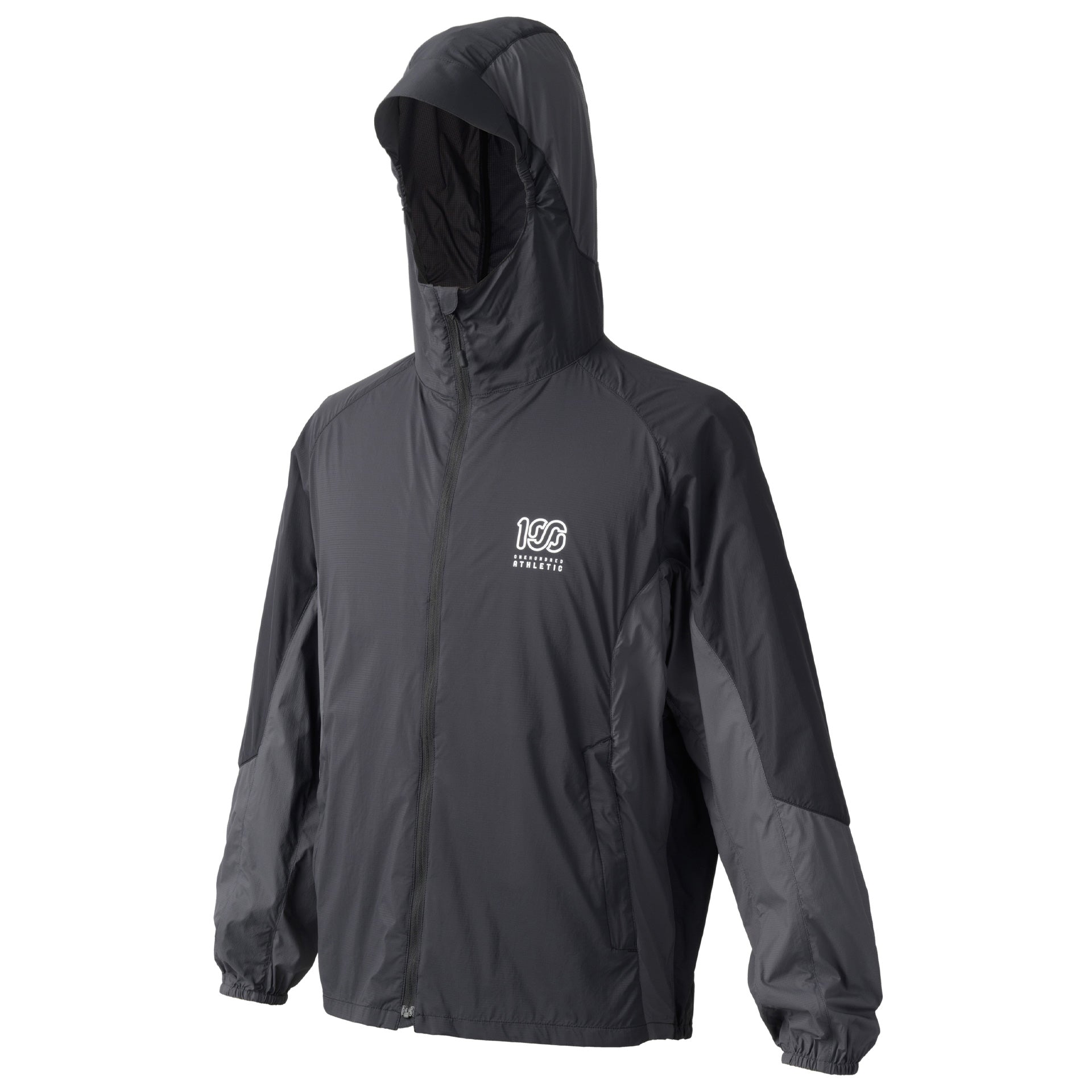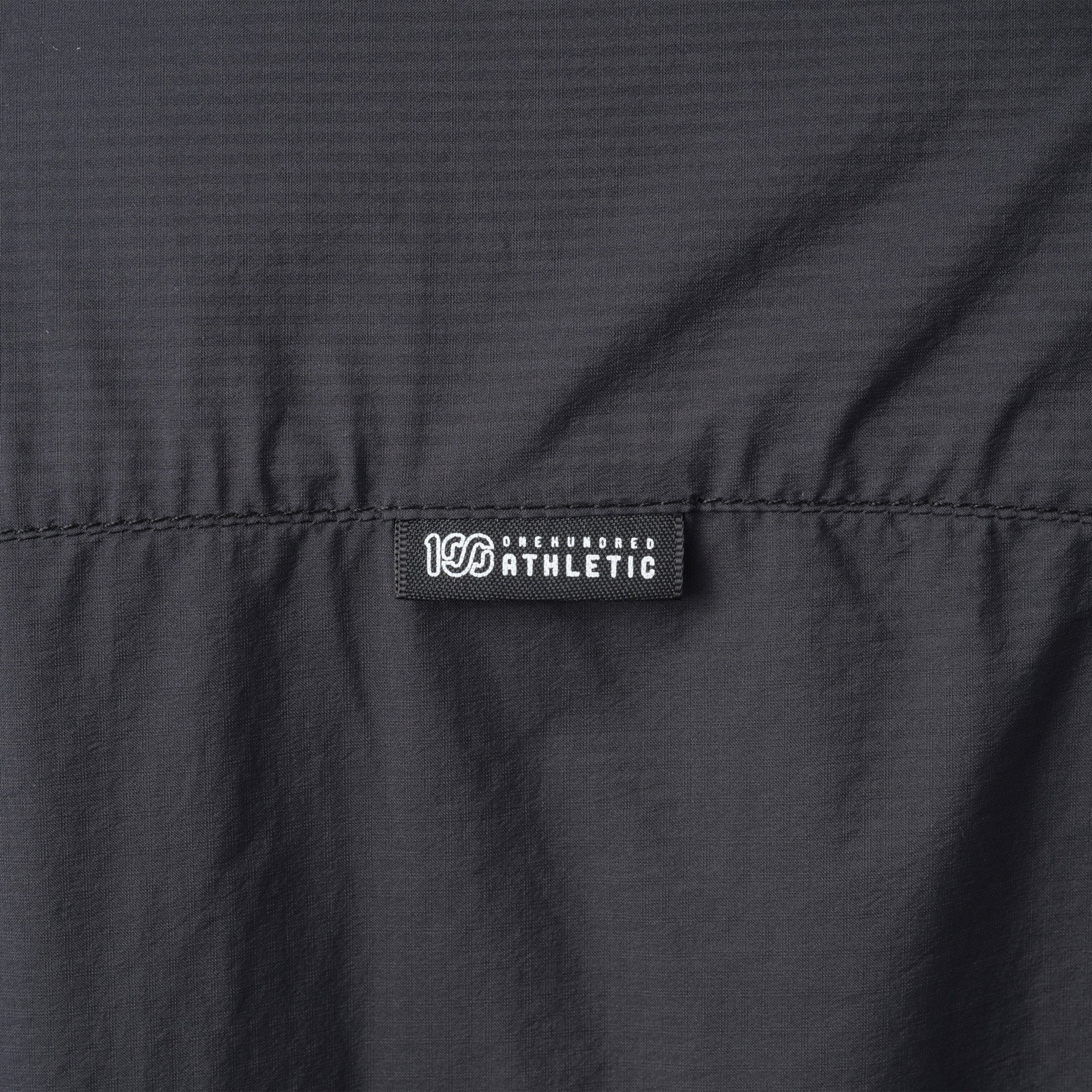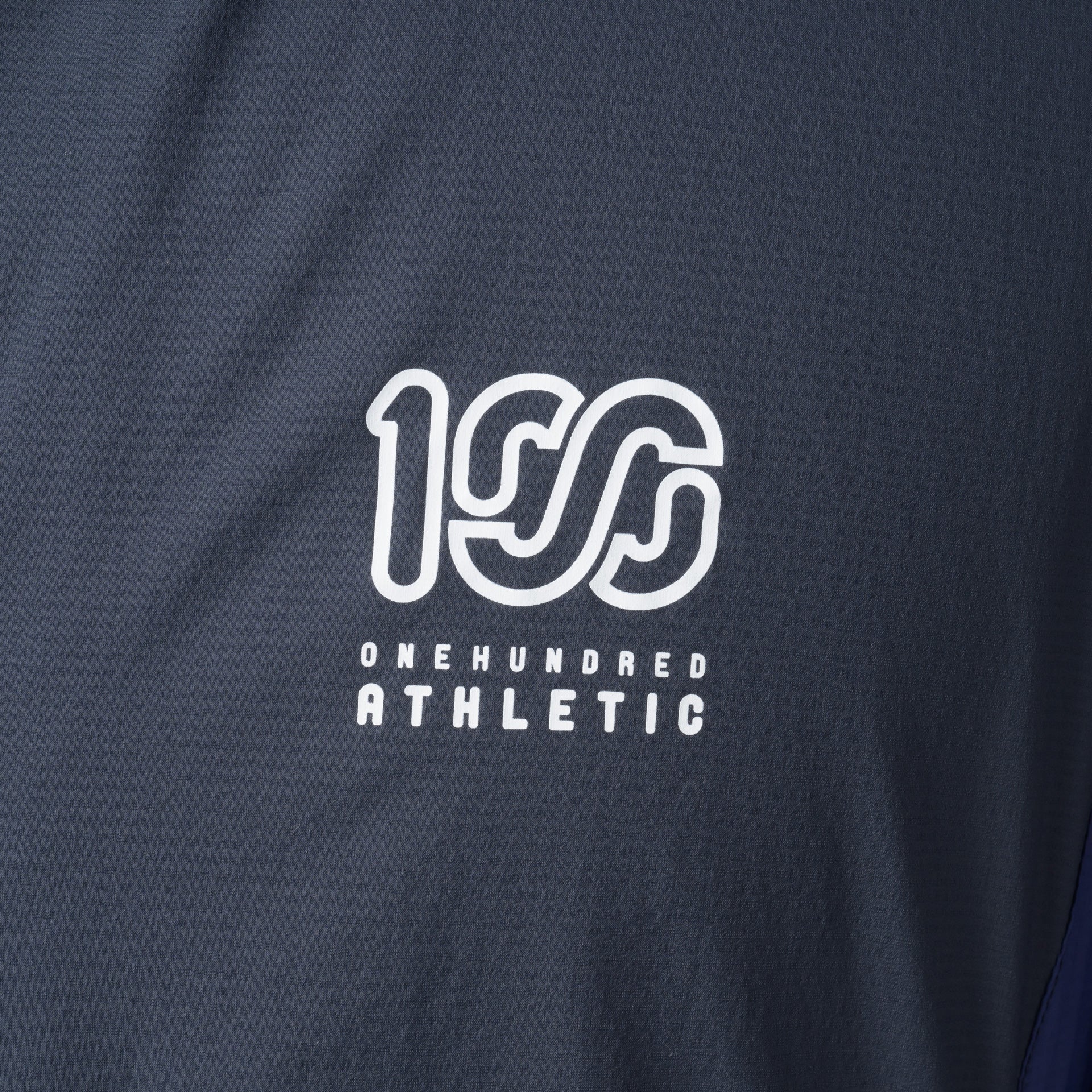 軽量で柔らかく適度な耐水性と透湿性のあるLEOFEEL®/レオフィールという素材を採用し、機能性としなやかな着心地を備えたジャケットに仕立て上げました。ウォーミングアップなどの軽い運動時や、外気に対して体温調整をするときに軽く羽織ったりと、幅広いシーンで活躍します。左胸には100Aスクエアロゴを、後ろ裾には100Aレクタングルロゴをプリント、両サイドにファスナー付きポケットを装備。