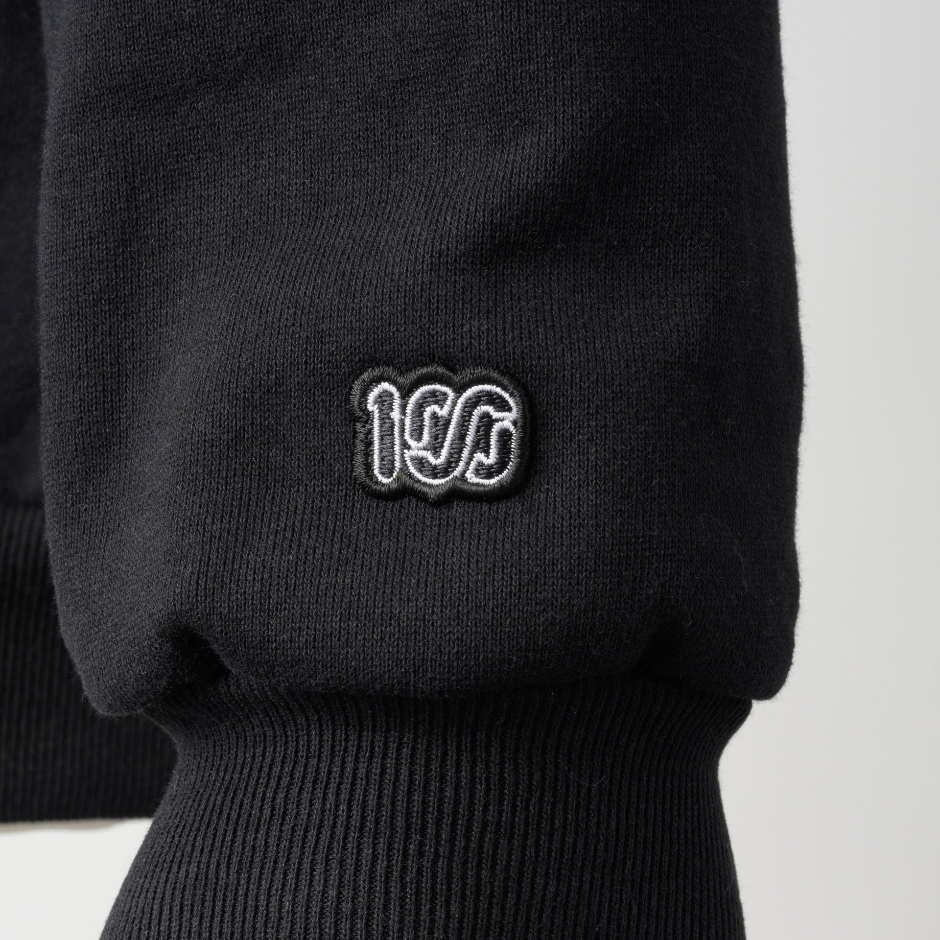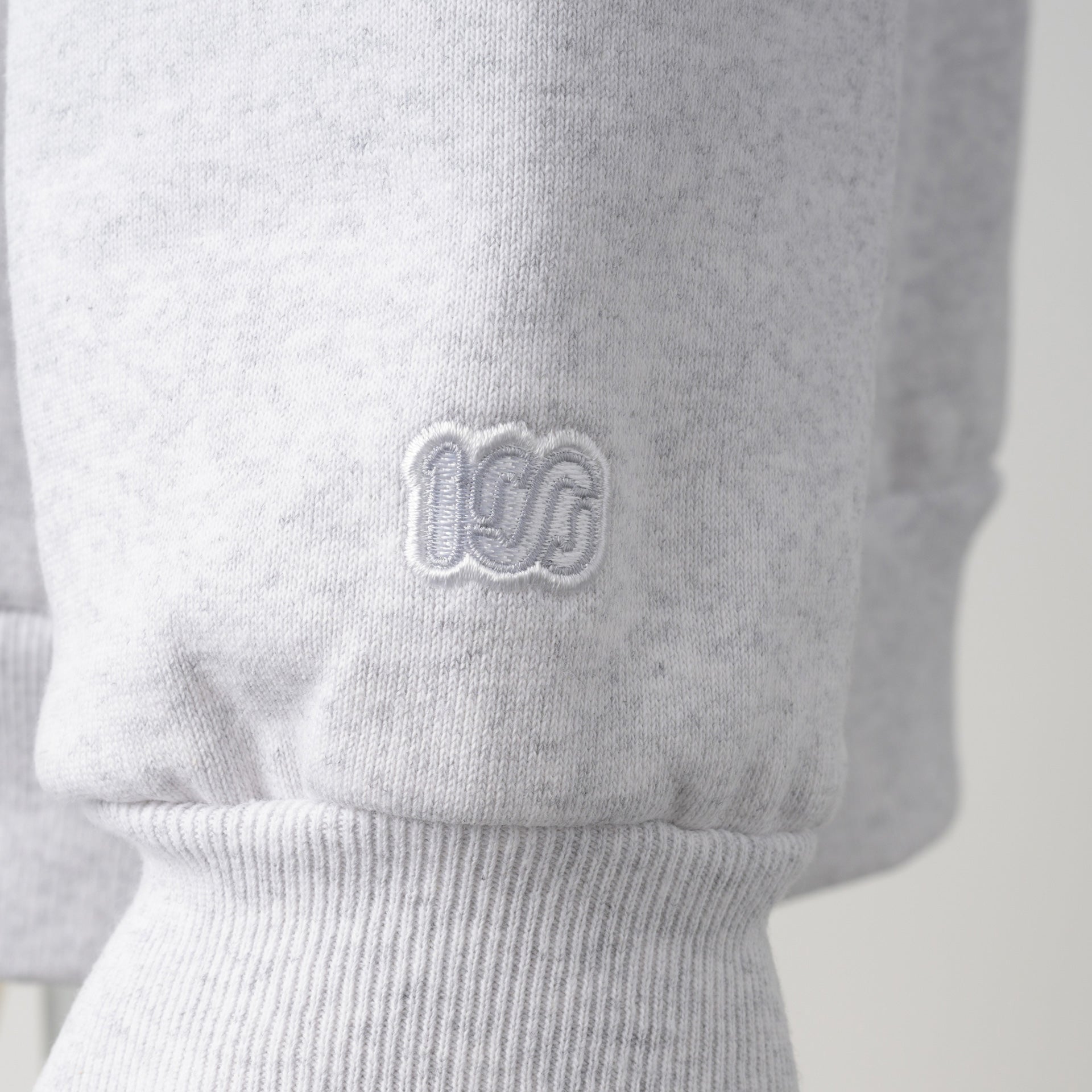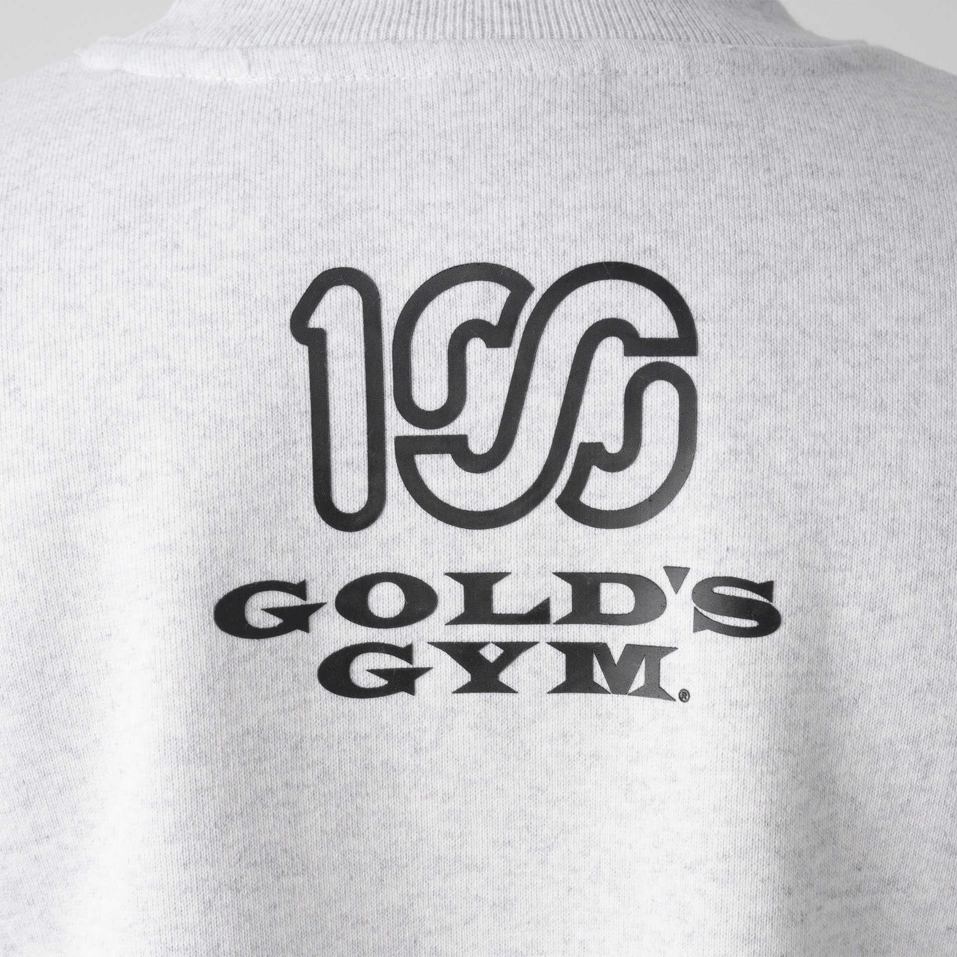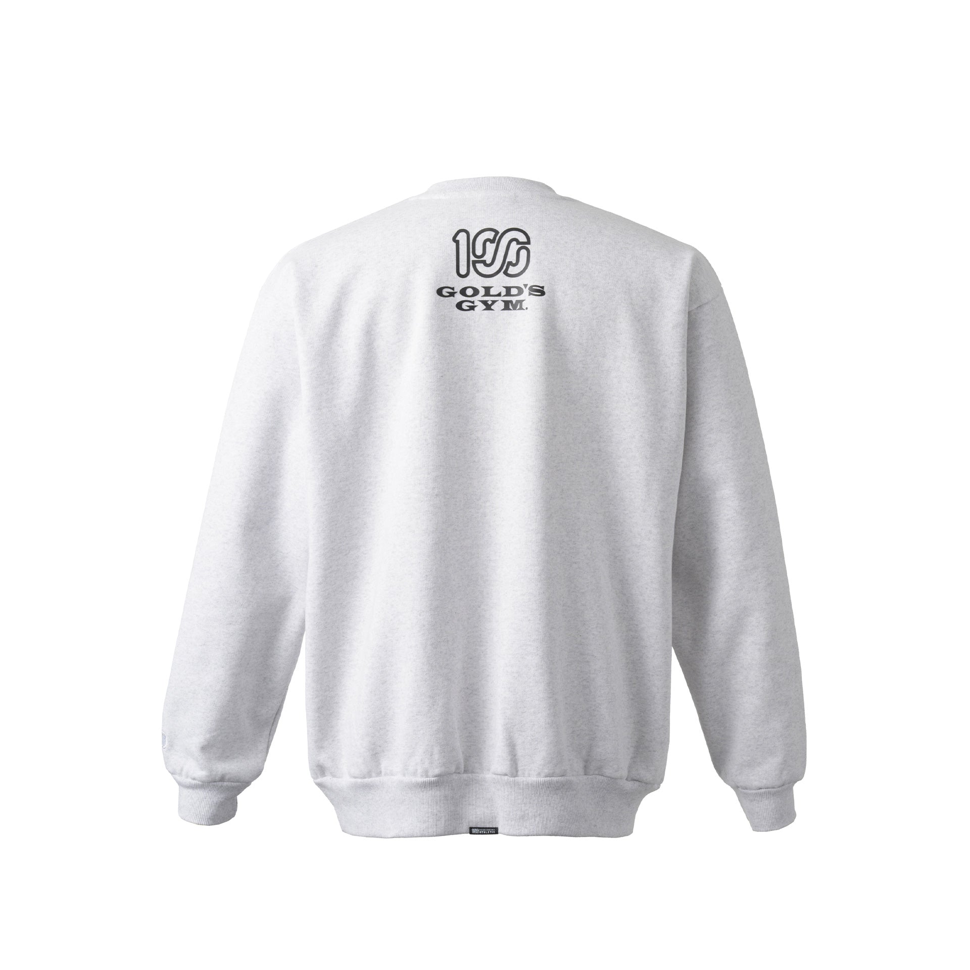 頑丈な編み立てに裏起毛を施した、15oz というボリュームの極厚生地を採用しました。オープンエンド糸を使用しているのでザラッとしたシャリ感とともに適度な保温性と吸湿性も有します。フロントにはGOLD'S GYM のオールドマンと100A のレクタングルロゴを組み合わせたネームドロップのデザインをプリントし、バックにはGOLD'S GYM と100A のロゴを組み合わせたコラボレーションロゴをプリント。